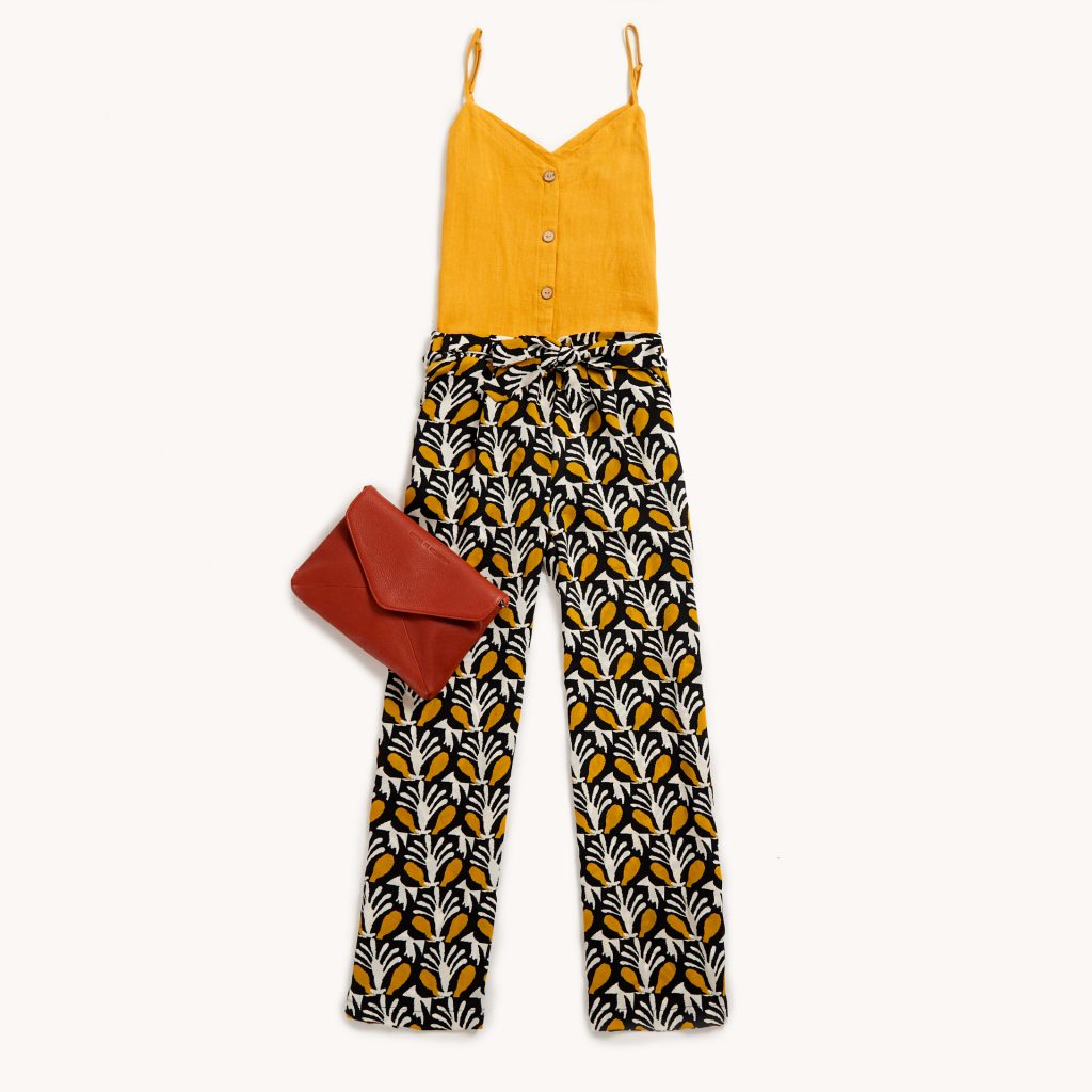 Se o teu plano de quarta é sair para jantar e beber uns copos em Cascais com as amigas, opta por um look composto por um top de linho em tom mostarda conjugado com umas calças fluídas estampadas. Não haverá hit de verão que te resista!
